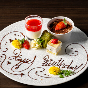 メッセージプレート付のコースもございます!送別会や歓迎会、お祝いにもお使い頂けます。【梅田/グランフロント/グラングリーン/貸切/夜景/飲み放題/3時間/宴会/大人数/記念日/お祝い】