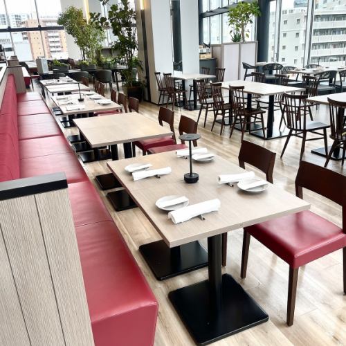 【夜景×ビュッフェ×FreeFlow!梅田で叶える贅沢パーティ♪】総席数120席の広々とした店内は、大人数での利用にも最適です♪友達との食事からビジネスユーズの会食、50名様以上のパーティなど様々なシーンにご利用いただけるのも魅力のひとつです。【梅田/グラングリーン/貸切/夜景/大阪駅/グランフロント】